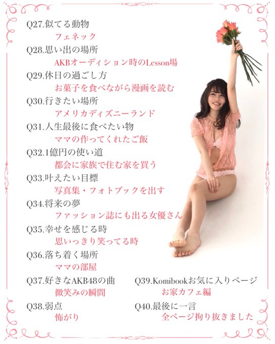 Si vous suivez le compte Twitter de Komiyama Haruka, @912_komiharu, vous n'êtes pas sans avoir remarqué que la capitaine de la Team K y exprime son rêve de devenir mannequin.