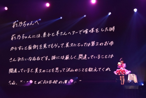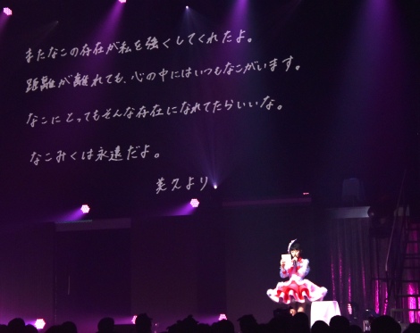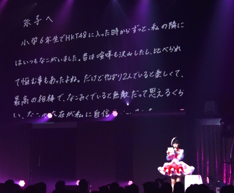 La dernière partie du concert, Tanaka Miku a voulu la dédier a des personnes qui lui sont importantes, elle a lu une lettre pour chacune d'entre elles, Yabuki Nako et Miyawaki Sakura (actuellement actives dans le groupe IZ*ONE), ainsi que les ex membres des HKT48 Kodama Haruka, Sashihara Rino et à toute les idoles du groupe de Fukuoka.
