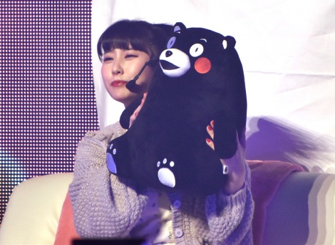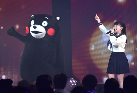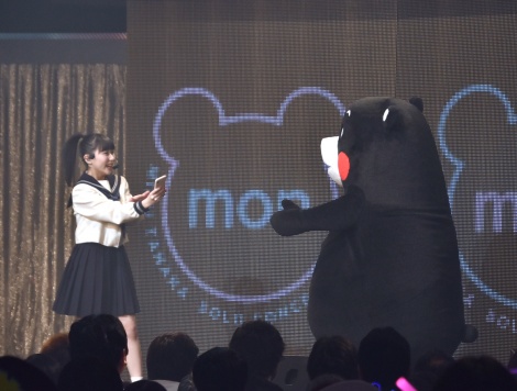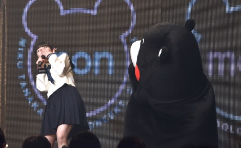 Comme Tanaka Miku est originaire de Kumamoto, le spectacle ne pouvait avoir lieu sans la superstar de sa préfecture, l'ours Kumamon, une visite que l'idole n'attendait pas.